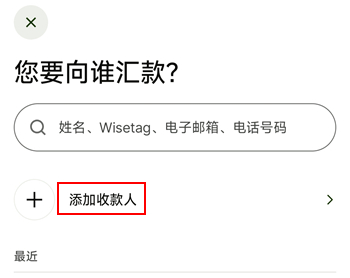 进入到“您要向谁汇款?”页面,在这里点击“添加收款人”