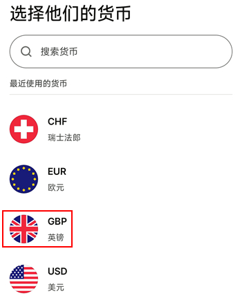 然后“选择他们的货币”,就是你iFAST银行收到的货币币种,这里选择英镑GBP