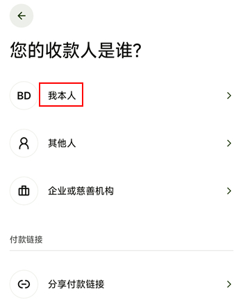 然后是选择“您的收款人是谁”,这里选择“我本人”,因为iFAST银行提供了一个你本人同名的英国账户