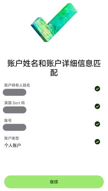下一步就是匹配核对收款账户的信息,如果没有问题的话,就点击“继续”进入下一步